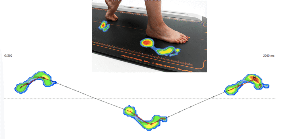 Dans ce chapitre consacré aux répercussions locales et à distance du HLF, il faut considérer que le mouvement de la marche est un mouvement synchrone qui positionne le corps dans une attitude donnée lors de l’appui sur pied, alternativement gauche et droite. Le corps passe au-dessus du pied dans un mouvement qui est analogue à celui d’un pendule inversé. A chaque moment du passage correspond un appui sous le pied qui se déplace d’arrière vers l’avant jusqu’à la propulsion. En cas de pronation ou de supination exagérée ou décalée dans le temps, la position du corps doit s’adapter et tenter de compenser le déséquilibre. Ce n’est pas toujours possible en particulier pour le genou car son anatomie ne permet pas de corriger un trouble rotatoire. Les muscles sont mis à contribution de manière plus importante en particulier les muscles bi-articulaires. Mais là encore la situation est rendue délicate par une posture corporelle qui rend la contraction moins performante et souvent décale le déclenchement de la contraction. En résumé, il s’agit d’un phénomène complexe qu’il convient encore de corréler à l’âge, à l’architecture osseuse et à la condition musculaire et morphologique de chaque individu pour en évaluer l’impact sur le fonctionnement et comprendre les répercussions cliniques. L’analyse de la marche et le bilan podologique sur tapis de marche sont nos plus précieux outils diagnostiques.